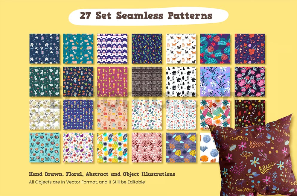 دانلود فایل لایه باز پترن تصویر اشیاء بدون درز ۲۷ تصویر