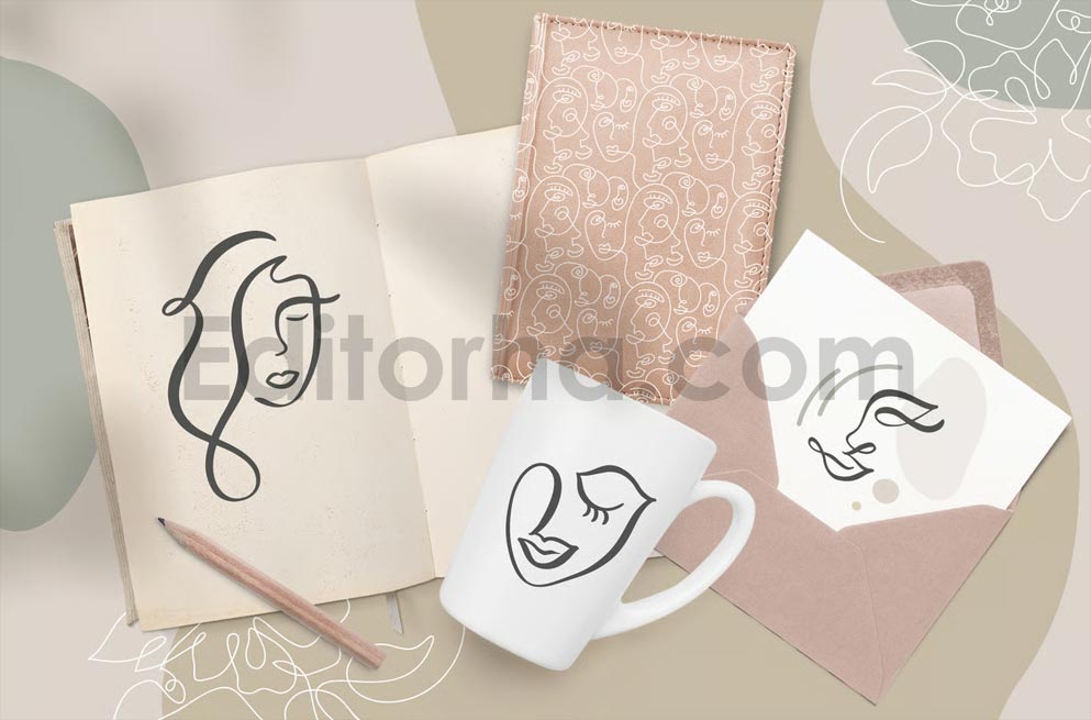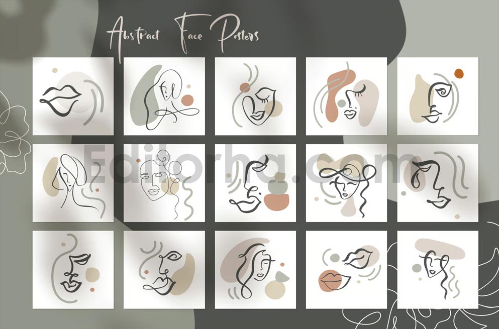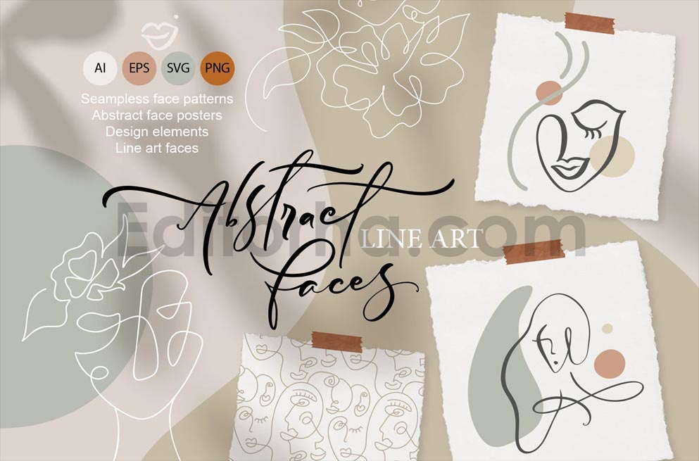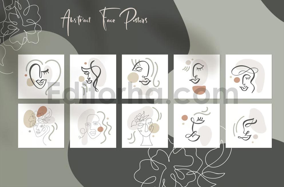 دانلود مجموعه وکتور لایه باز چهره های خطی و انتزاعی