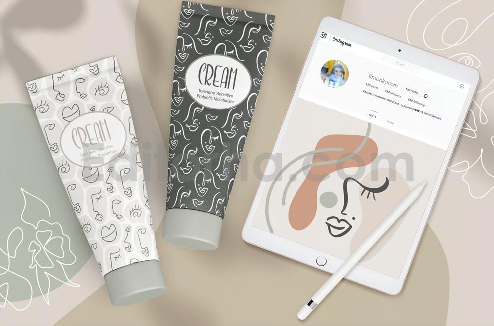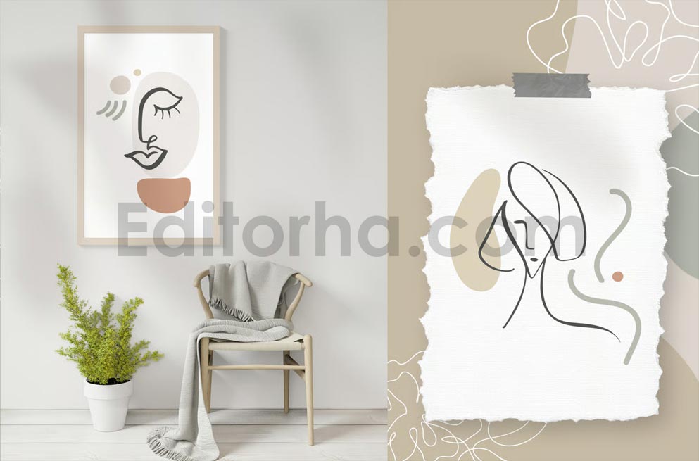 این پَک شامل عناصر هنری دست‌کشیده با اشکال انتزاعی، ترکیب‌های خاص از چهره‌های زن، پوسترهای آماده خلاقانه و الگوهای بدون درز (seamless patterns) است.