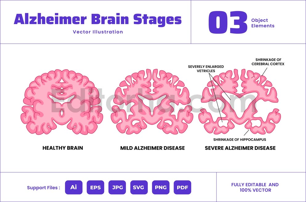 دانلود وکتور لایه باز مراحل بیماری آلزایمر در برش مقطعی مغز