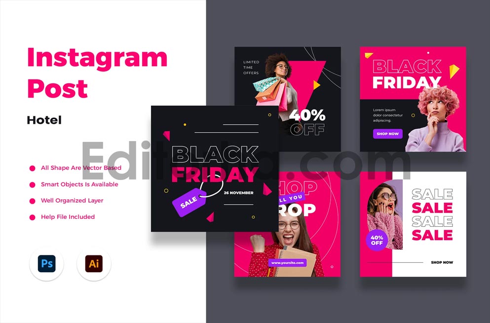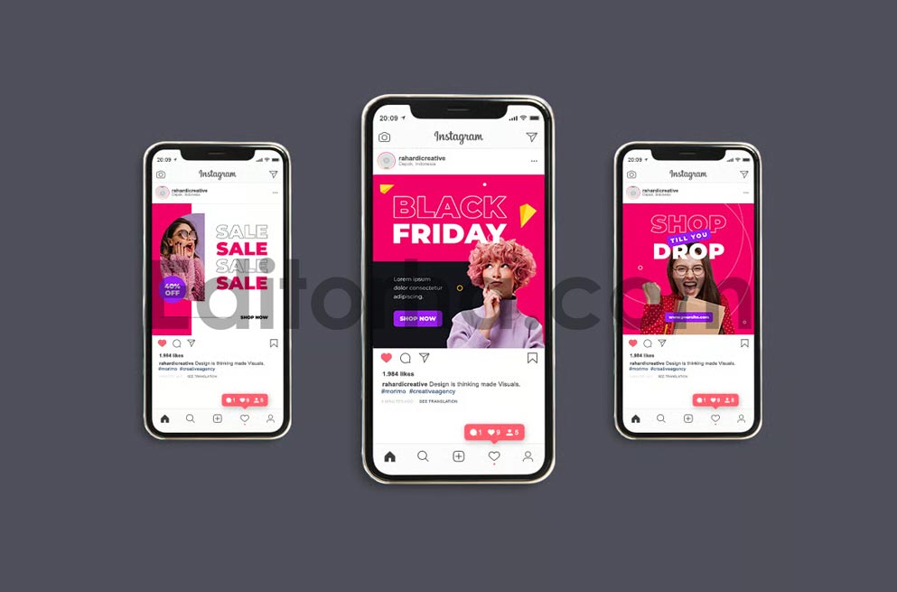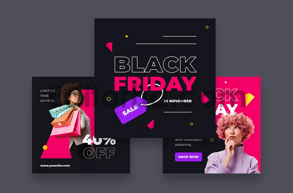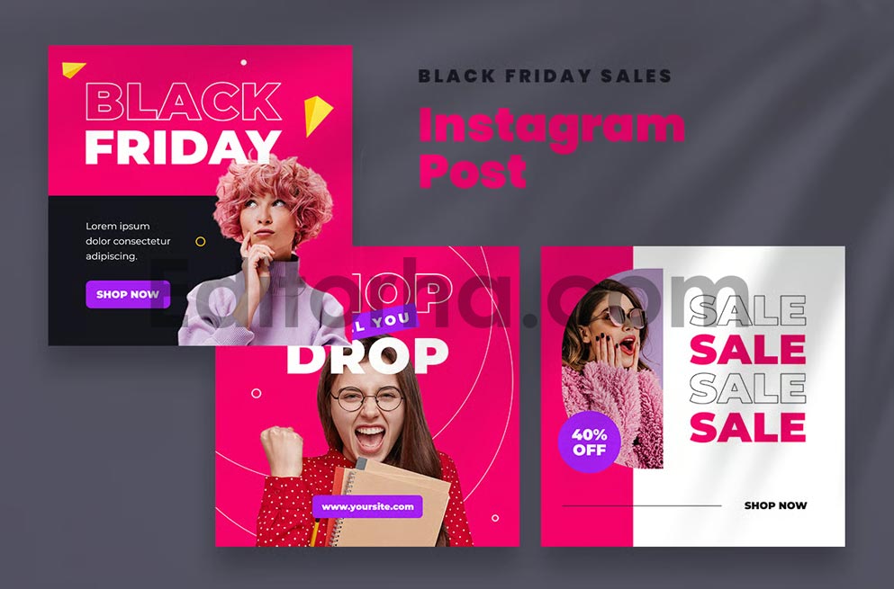 دانلود مجموعه قالب آماده لایه باز پست اینستاگرامی فروش ویژه جمعه سیاه