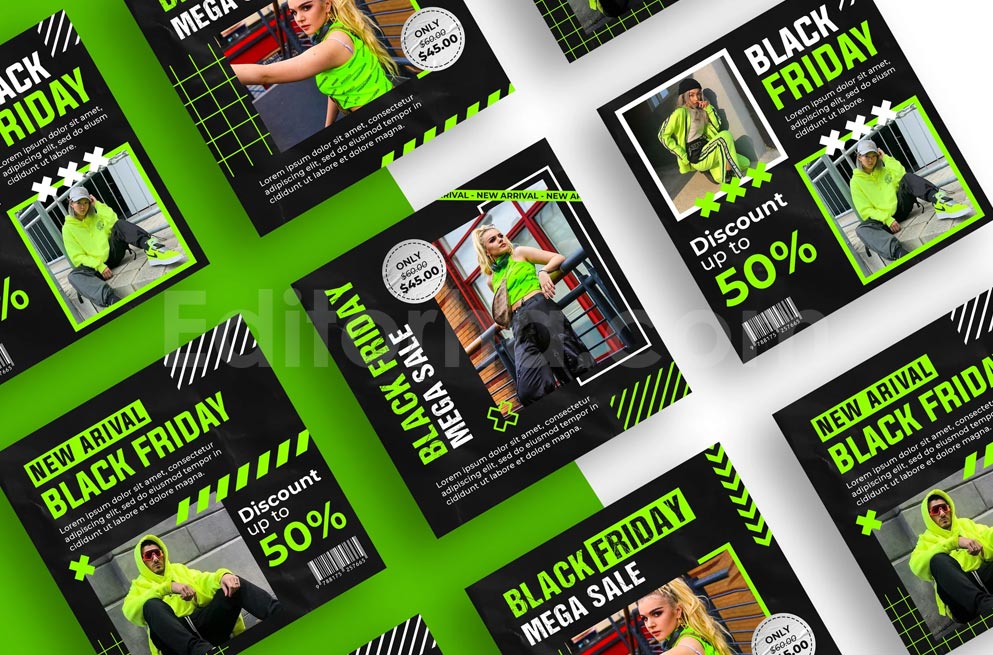 پک «پست اینستاگرام سوپر سیل بلک فرایدی» شامل تمامی قالبهای پایه و ضروری برای پستها و هدرهای شبکههای اجتماعی است که میتوانید انتخاب کرده و بر اساس برند خود شخصیسازی کنید.