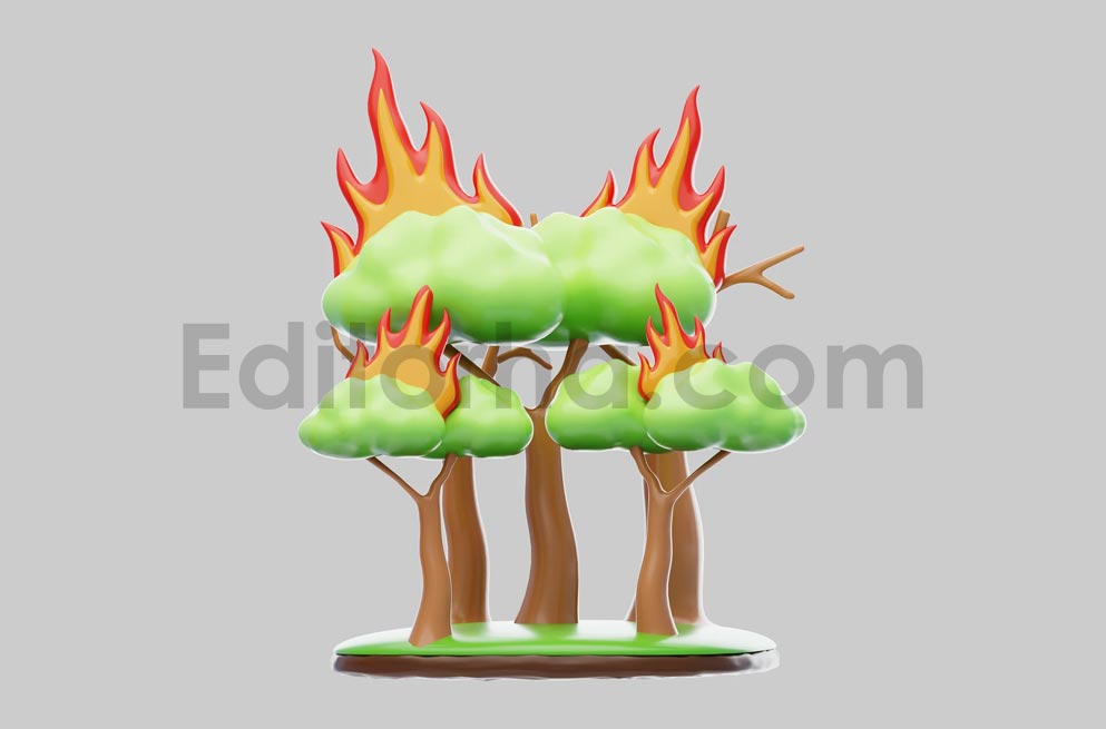 دانلود مدل آماده سه بعدی: جنگل کارتونی در حال سوختن
