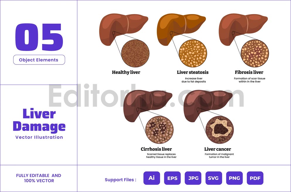 این تصویرسازی وکتور با کیفیت بالا از مراحل بیماری کبد چرب – مراقبت، درمان و آسیبهای کبدی، گزینهای عالی برای نیازهای طراحی شماست. میتوان از آن در پوسترها، بروشورها، بنرهای بازی، صفحات فرود، انیمیشنها، اپلیکیشنها، ارائهها و موارد دیگر استفاده کرد. رنگها بهراحتی در نرمافزار Illustrator قابل تغییر هستند.