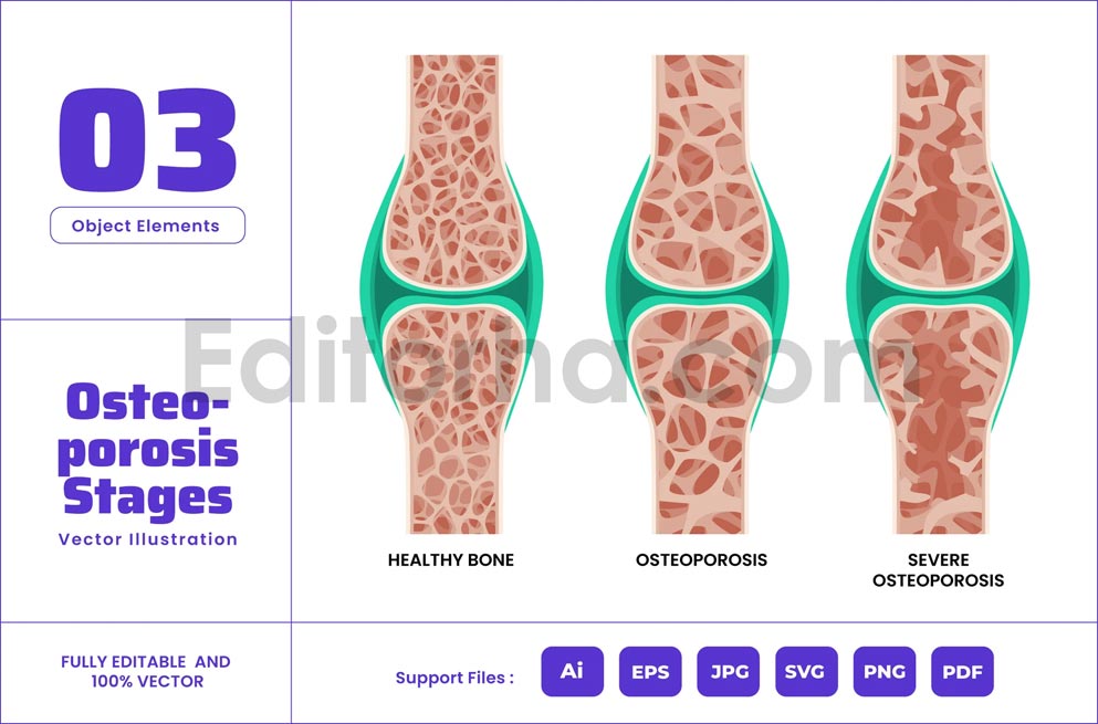 دانلود وکتور لایه باز مراحل پوکی استخوان در سیستم اسکلتی بدن