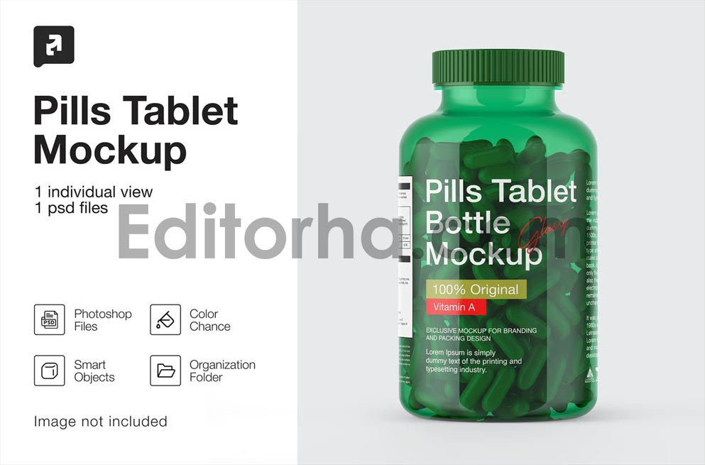 دانلود موکاپ بطری پلاستیکی مخصوص دارو با کپسول
