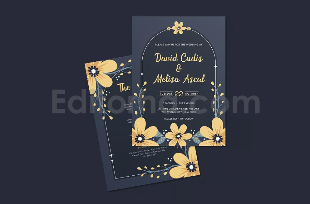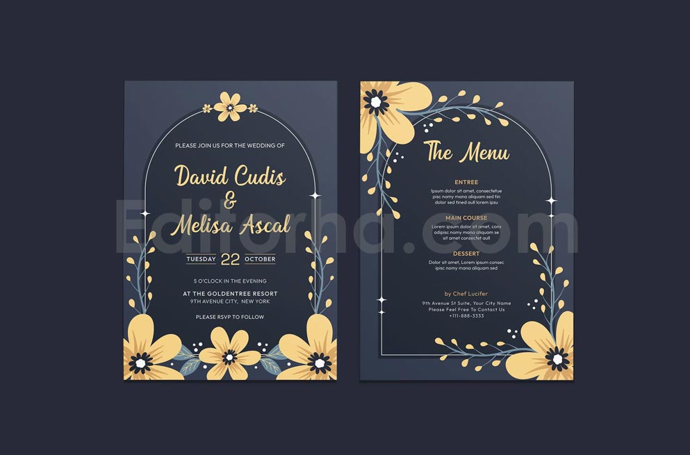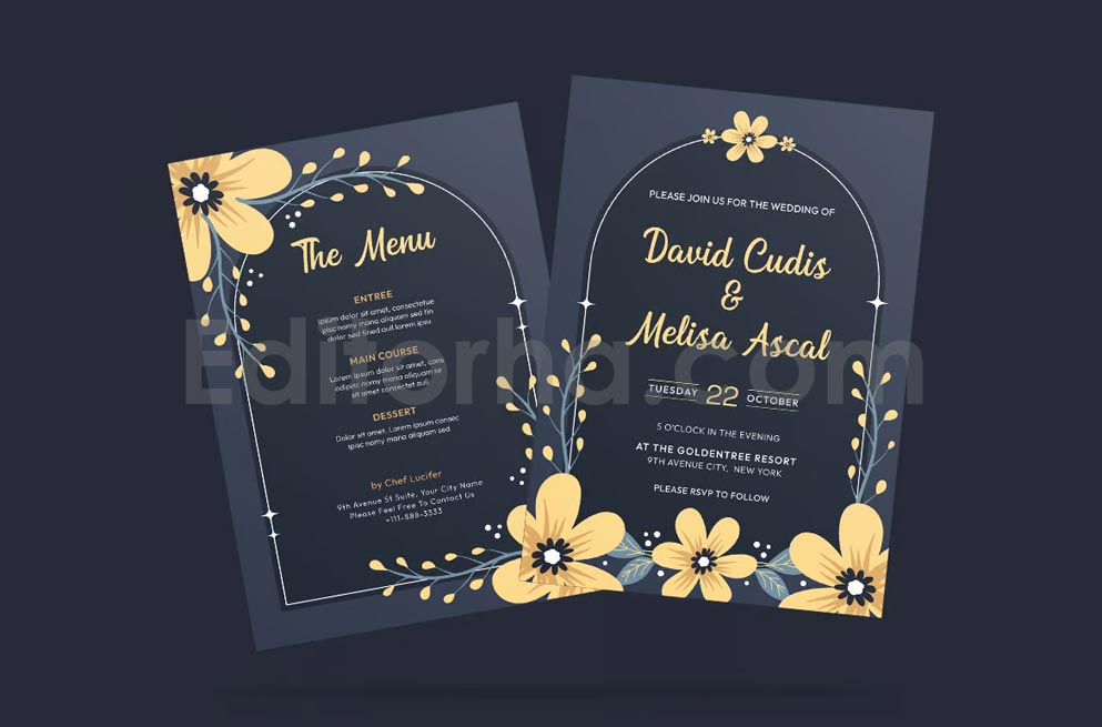 • شامل دو طرح: بسته شامل طرح‌های دعوتنامه و منوی عروسی است.