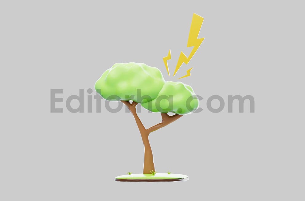 دانلود مدل آماده سه بعدی: برخورد صاعقه به درخت، کارتونی