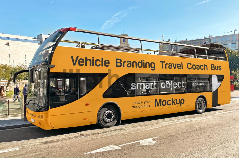 دانلود موکاپ اتوبوس مسافرتی برای برندینگ، ایده آل برای برندسازی و تبلیغات محیطی