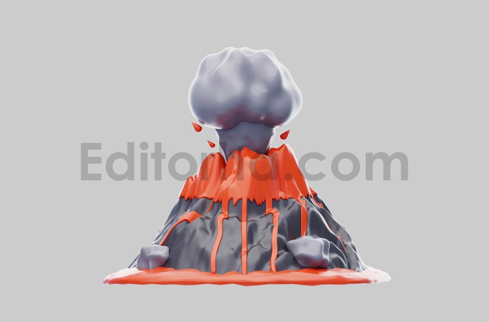 دانلود مدل آماده سه بعدی: فوران آتشفشان با جریان گدازه، کارتونی